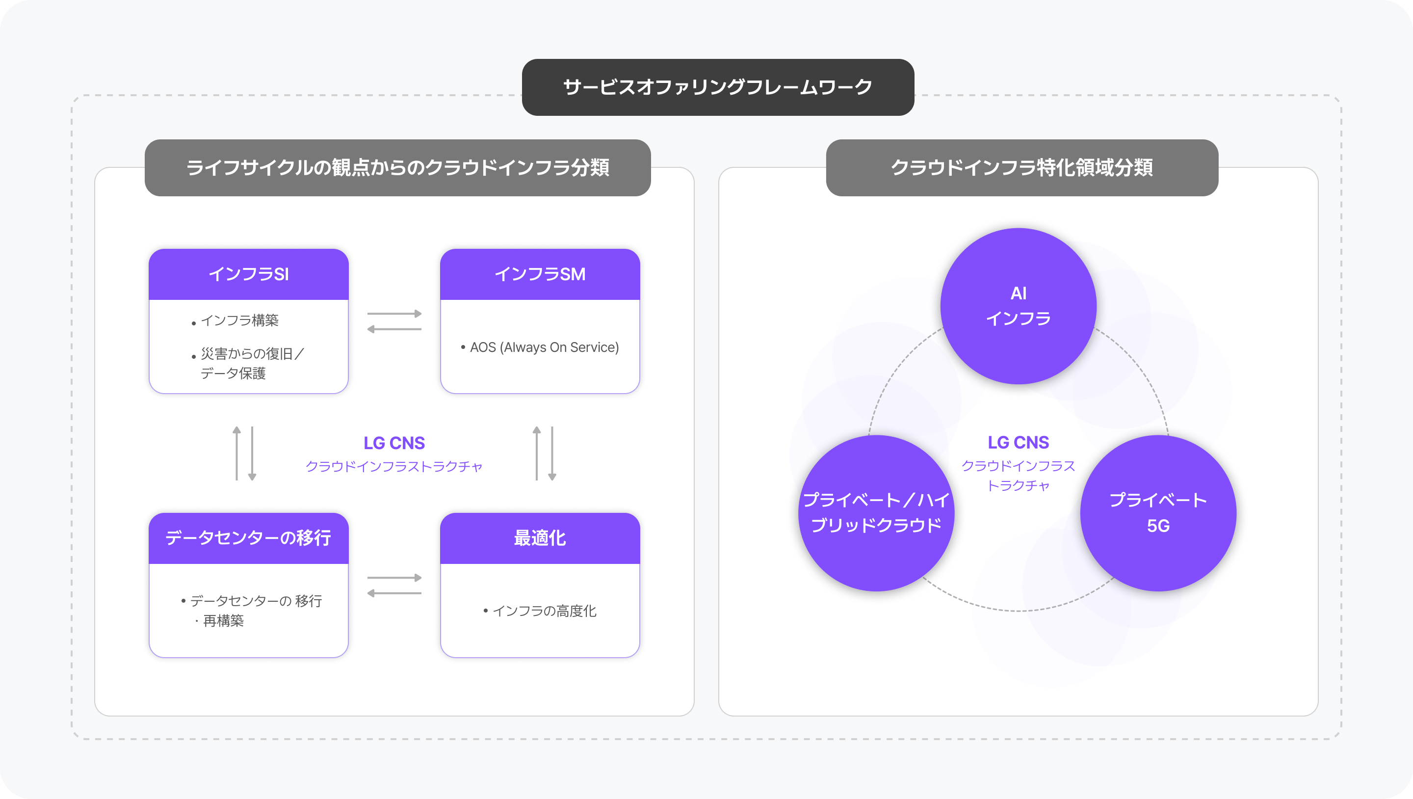 LG CNSは、グローバルテック企業とのパートナーシップをもとに、クラウドインフラビジネスにおける卓越した競争力と、豊富なプロジェクト経験を持つ専門人材により、お客様のIT環境に最適なサービスを提供します。